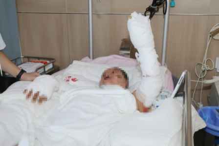 图:患者依依(化名)身体85%的面积烧伤