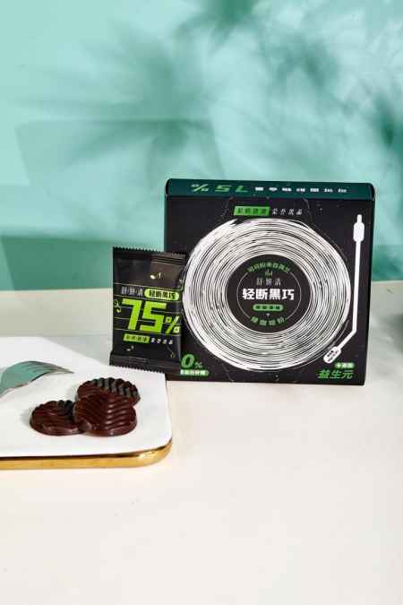 它旗下的轻断黑巧,不是普通的黑巧,它采用来自荷兰进口的纯天然可可,75%高纯度可可固形物能抗饿饱腹,抑制食欲。特别添加的绿咖啡粉能阻断糖分吸收,同时促进人体脂肪燃烧供能;搭配益生元低聚木糖促进消化,不含蔗糖、不含代可可脂,健康无负担配方,美时美刻,尽享轻盈!
