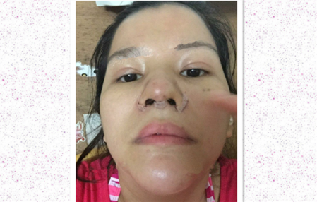 今天我脸上分泌的油脂太多了,胶布都掉了,没上过耳朵图大家看,今天拍了给你们看,鼻子不痛了,耳朵也没那么痛,希望快点好起来,不知道是不是没消肿,鼻头不是很高,也不够尖。