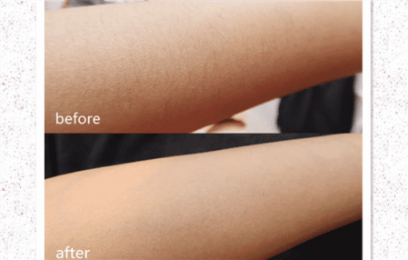 周星星:“第一次用完脱毛仪没什么感觉,毛毛还是照长,但是第单次以后效果就逐渐显现了。第四次打光五天之后,腿部的脱毛效果比较明显,没有长出明显的毛发;手臂的毛毛也不像以前有些打手,会变得细软一些;手指处的细小毛发基本上是脱毛了,而且**第四次打光已经五天后是一点都没长的;只不过腋下部位的脱毛效果并不明显。”
