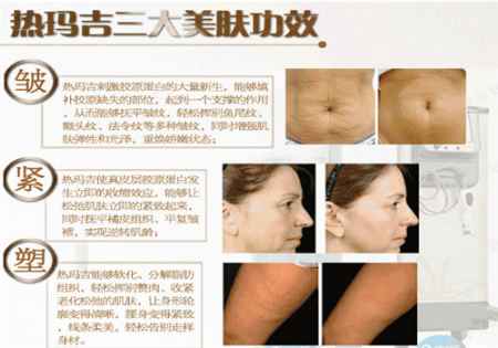 热吉马就是热玛吉,它能使面部塑形年轻化、快速除皱、紧致肌肤,还能身体塑形。采用于治疗前在治疗部位打格定位技术,定格刺激并增加皮肤自身的胶原,通过电磁波产生的热能对皮肤加热,让胶原蛋白重组新生,达到提拉紧致的效果。