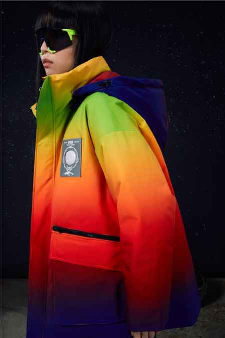 色彩方面,雪中飞在该系列羽绒服上加入了犹如浩瀚宇宙般的丰富色彩。太空银、天空蓝、**渐变等色彩,让羽绒服兼具层次感与科技感,为单调的冬日带来更多亮丽色彩和穿搭灵感。