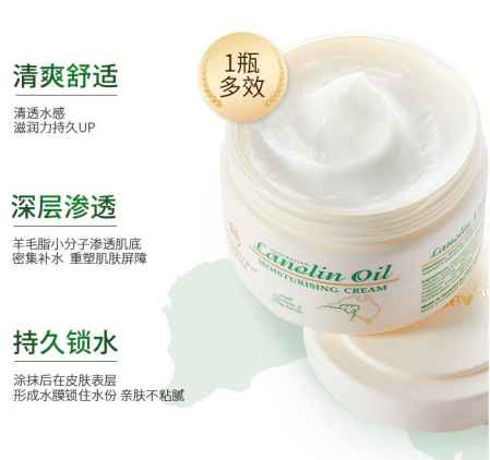 它具有品质的天然防晒,防冻,止痒,消肿的作用。另外它能提供给皮肤一层特殊的保护膜,有效阻隔外界因素对皮肤的伤害。白天上妆出门前使用绵羊油,可给面部皮肤提供一天的滋润保护作用。夜晚使用能补给皮肤白天损失一半以上的水分和营养,深度保湿和修护面部皮肤。