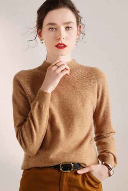 3. 在穿着高领羊毛衫时,尽量动作轻柔,不要**拉扯,穿着时,将领口翻下的部位恢复原状,然后套进去再将领口翻下即可(增加受力面积,可以防止过早变松)。