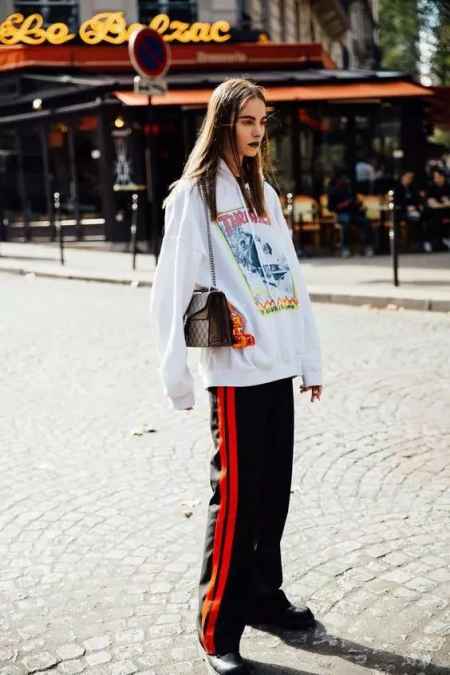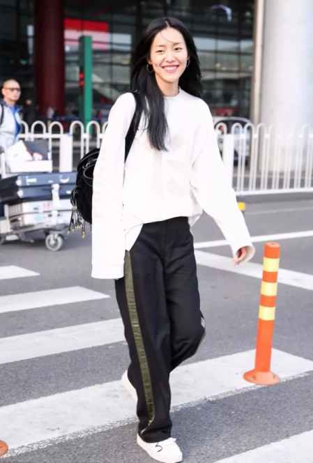 大表姐刘雯就很喜欢用纯色卫衣搭配侧边条纹阔腿裤,看起来舒服,穿着也很舒适。