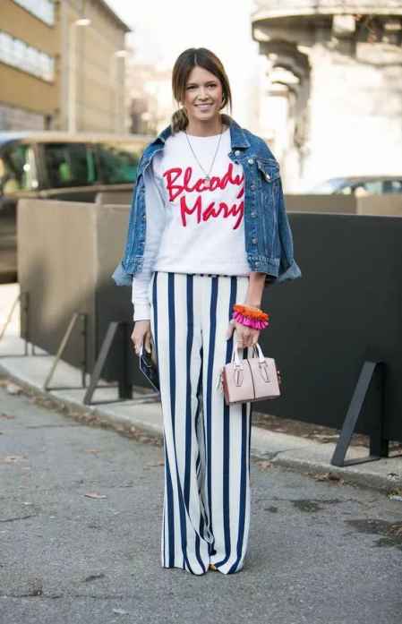 条纹阔腿裤的显瘦显高效果超级棒,加上阔腿裤自带的“瘦腿”效果,搭配休闲卫衣轻松chic起来~