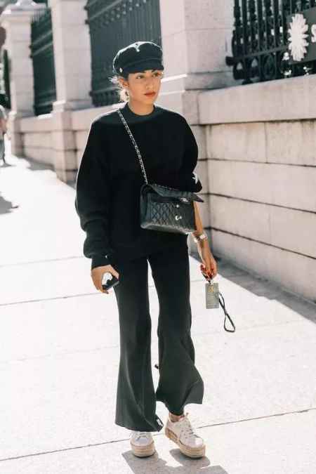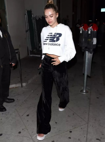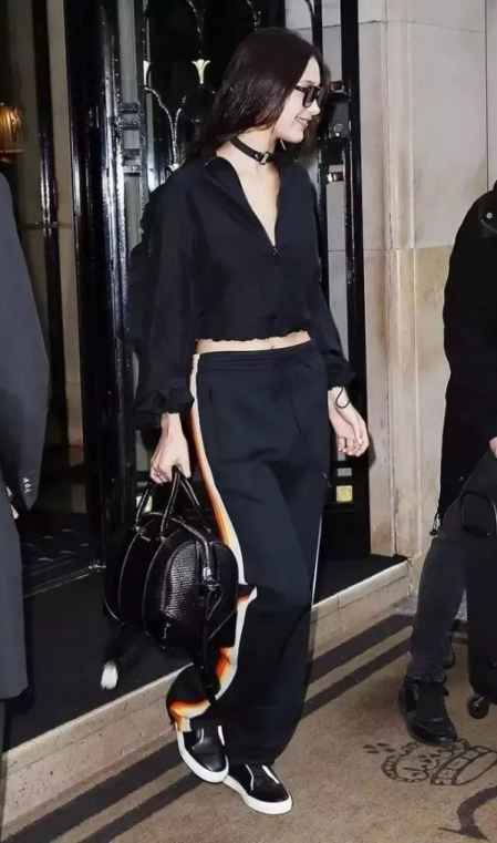 Bella Hadid黑白同色系都穿得非常出彩,就像Madam说的,同色系搭配要注意细节的设计。白色卫衣绑带设计和喇叭袖口,黑色卫衣适当的露肉还有配饰choker的点缀都为全身Look增色不少~
