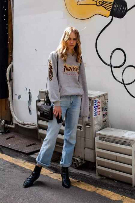 说到卫衣的好拍档,自然不能少了牛仔裤!牛仔面料的阔腿裤和慵懒的卫衣相辅相成,形成随性又活力的style。