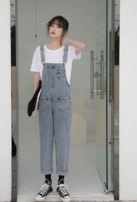 要说轻松减龄又散发着时尚**气质的长裤有哪些?那肯定非牛仔背带裤莫属了。时尚百搭的牛仔背带裤,随意搭配一件长袖T恤或者衬衫,就能够让你轻松凹出各种时髦造型。而且它能让你轻松减龄,让你感觉萌萌哒。优质纯棉面料,柔软、舒适、透气,不规则破洞设计,有种**不羁的街头范。舒适中腰版型的牛仔背带裤,跳脱传统的平庸,更能魔术贴合小腹,舒适展现平腹,让腰腹更加轻松自如,石魔、破洞、猫须压褶套色等,时尚潮流。背带裤以经典的小脚铅笔裤裤型设计,时尚百搭,修身显瘦,加上背带的款式,俏皮**,充满青春活力气息。