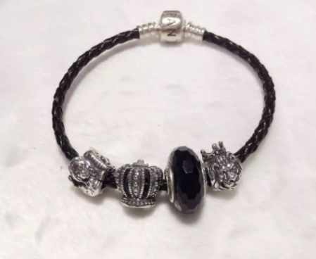 男生可以戴氧化银蛇骨或者黑色的皮绳。至于珠子,光面几何素银、镂空素银、原色密镶、做旧款、深色系琉璃还有e的很多款都可以搭