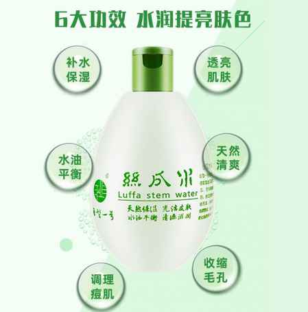 保湿美白:丝瓜水含有大量天然保湿因子,不黏腻的保湿成分可有效的维持角质层正常含水量,从而减慢脱水与延长水合作用,能补充肌肤必要的水分。经常使用丝瓜水可很好的保持肌肤水嫩、细腻,同时还能起到保湿美白、舒缓紧绷干燥肌肤的功效。