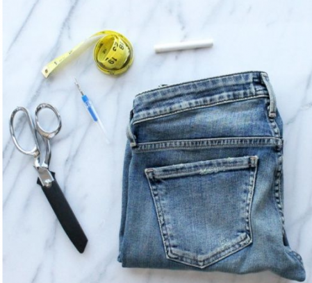 牛仔裤 剪刀 挑线针 卷尺 粉笔