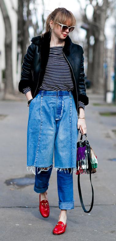 百搭的牛仔夹克,可以用乐福鞋凹出更休闲的感觉,来做个更安静的潮女子。也可以学着达人挑靓丽的乐福鞋增加时髦度哦!