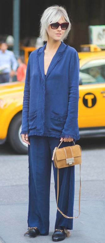 当你还在嘲笑人家将睡衣装穿出街时,人家已经穿着潮流走在街上,而在秀出的睡衣装造型中,搭配皮质乐福鞋是最多的,小编觉得主要原因就是大写的“舒服”,毕竟其它鞋款貌似都在睡衣装下显得过于强势,而且乐福鞋皮质的光亮感还看出了几分高级的慵懒美。