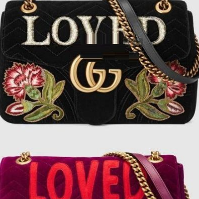 名叫GGMarmont系列,天鹅绒的布料上还有“LOVED”字样