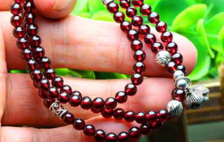 红石榴石珠子串成的手链非常漂亮时尚。而且,红石榴石能刺激人体血液,加快血液循环,加快人体新陈代谢的更新,让人保持青春活力,更加光彩洋溢,达到美容养颜等效果。