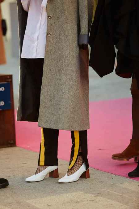 Celine的这类V口鞋今年有好几款,粗跟细跟,今年最另类时髦的搭配也是出镜率最高的组合,那就是Celine的这双鞋子配踩脚裤来穿,彰显**时尚态度。