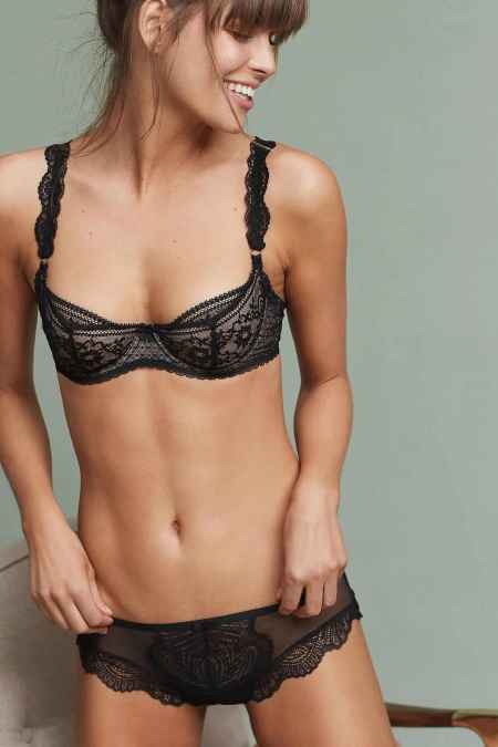 其实这款**有点挑人,丰满的姑娘穿上远不如平胸姑娘好看,但任何姑娘都不会拒绝一件黑色蕾丝Bralette,只要你送,就是对的。