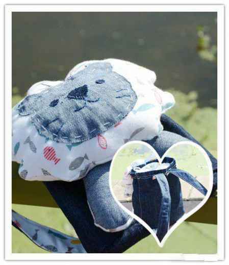 3、准备好底和桶身后,我们先放一边,缝小狮子,在牛仔布的背面画上小狮子,不用留。