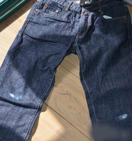 第一步:将破牛仔裤的裤管剪下,做包包“桶身”