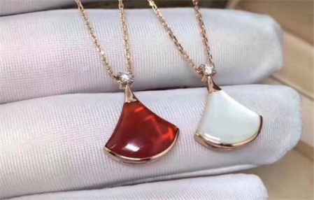 宝格丽这款扇子项链有很多种不同的材质可以选择,贝母、玉髓、钻、18k金都有,大家可以选择自己喜欢的材质。宝格丽项链大胆独特、尊贵古典。均衡也融合了古典与现代特色,突破传统学院派设计的严谨规条。
