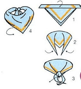 宝宝三角巾的系法图解 三角巾结+童军结 12-09 阅读(142146) 方巾 三角巾既可以给宝宝当口水巾,也可以给宝宝当头巾,冬季还可以给宝宝当围巾哦,下面就来看宝宝三角巾的系法图解! 宝宝三角巾的系法图解 三角巾结+童军结童军结首先将三角巾对折一小长方形,然后两角打上一结,(如图所示)就能系出方巾的童军结,这种系法十分具有个性。上一页下一页 了解更多时尚资讯立即关注 查看全文