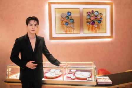 青年演员曾舜晞先生于精品店内参观Pomellato宝曼兰朵珠宝作品